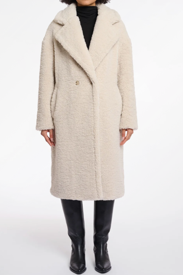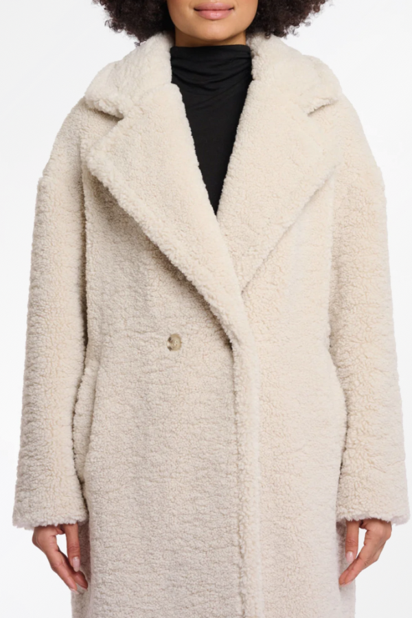 Regular price $195.00 Save Liquid error (snippets/product-template line 131): Computation results in '-Infinity'%The Teddy Double Breasted Coat blends warmth with timeless style. Designed with a classic double-breasted front and a smart collared neckline, this longline teddy coat brings an elegant touch to its cosy, plush texture. Perfect for staying chic and snug all winter long!