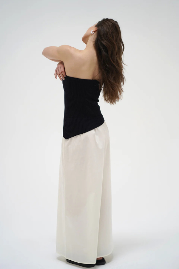 Regular price $168.00 Save Liquid error (snippets/product-template line 131): Computation results in '-Infinity'%Roen is a strapless dress with a sweater knit top and cotton woven bottom.