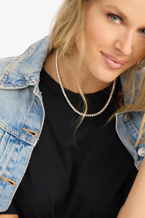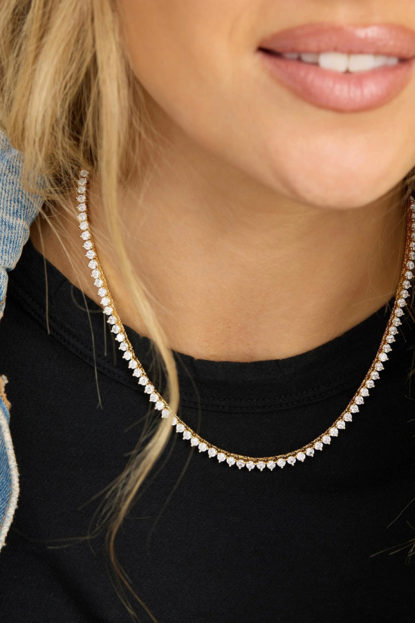 Classic, classic, classic— everyone needs the perfect tennis necklace in their layering game. Shop Melinda Maria's tennis necklace that's versatile for everyday wear and special occasions. Their simulated diamond tennis necklace styles are fashion jewelry staples, providing an understated elegance to your outfit. The precise length ensures a flattering fit for layering necklaces and plunging necklines. The Not Your Basic Tennis Necklace goes beyond conventional designs, offering a refined twist on a classic jewelry style. When you choose Melinda Maria, you're investing in detailed craftsmanship and a commitment to delivering high-quality, stylish jewelry pieces for all.
