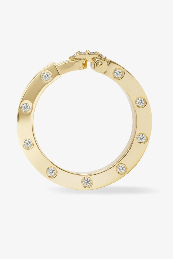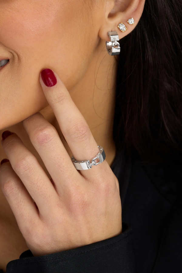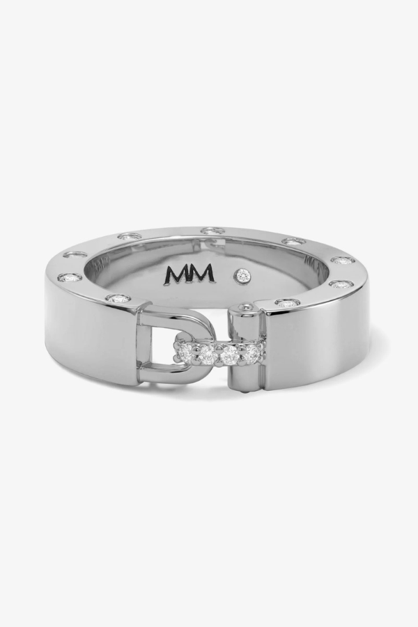 Regular price $68.00 Save Liquid error (snippets/product-template line 131): Computation results in '-Infinity'%Lock in. A smooth, polished ring defined by lock-inspired detailing and bezel-set round simulated diamonds. Refined, modern, and quietly bold.