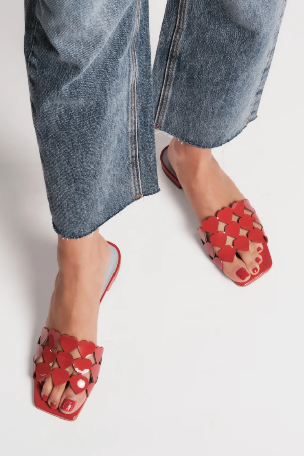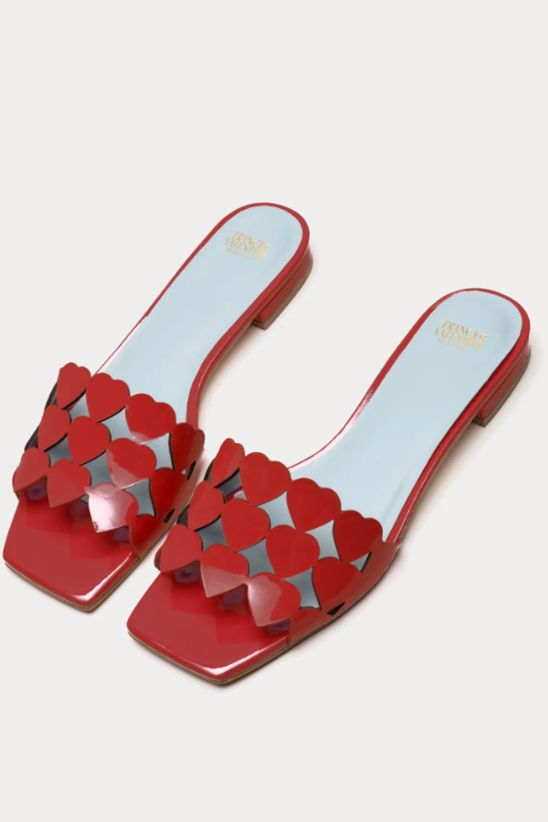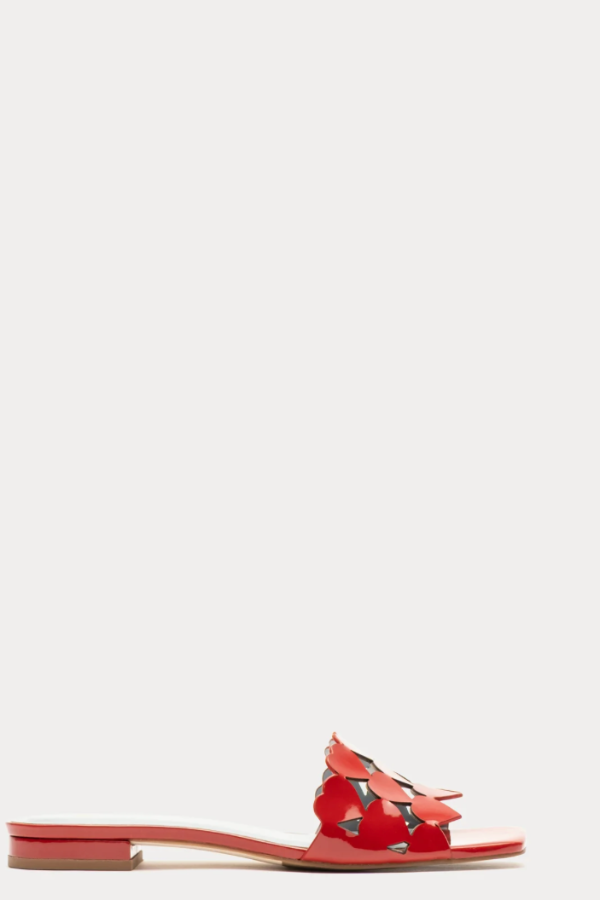 Regular price $298.00 Save Liquid error (snippets/product-template line 131): Computation results in '-Infinity'%These flat slide sandals are crafted with Love. Designed with three rows of leather heart cutouts across the foot, they are easy, charming, and endlessly wearable.