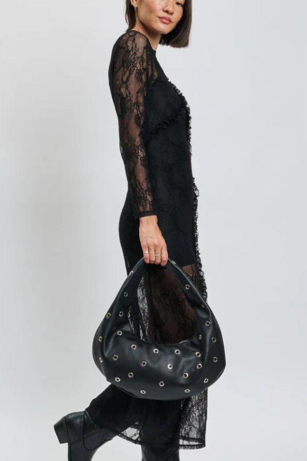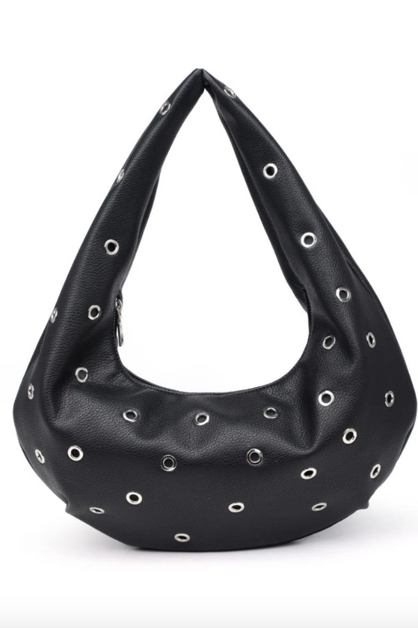 Unleash your inner trendsetter with the Riot Shoulder Bag, a statement piece that seamlessly blends chic style with everyday functionality. This bag features striking eyelet details, adding a bold touch to its soft silhouette. With an organized interior, you'll find a perfect spot for all your essentials—comfortably transitioning from day to night. Whether you’re headed to brunch or out for the evening, the Riot Shoulder Bag is your perfect companion. Elevate your collection with this versatile accessory that effortlessly complements any outfit. Make it yours today!