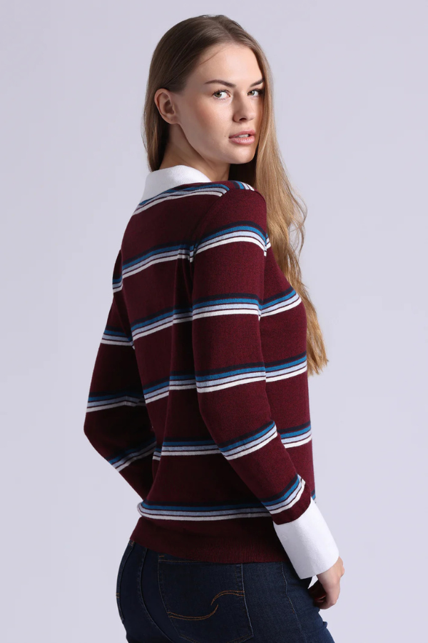 Meet the polo that plays by its own rules. With its classic collar, sporty stripes, and luxuriously soft cotton cashmere blend, this long sleeve is serving up timeless style with a modern Minnie Rose twist. It's polished, it's effortless, it's everything your closet’s been waiting for!